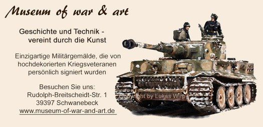 Das Museum of war & art beherbergt die größte weltweite Sammlung von signierten Militärgemälden. Die Signaturen stammen u.a. von Ritterkreuzträgern des 2. Weltkrieg, Nahkampfspange in Gold, NVA Generälen, Inspekteuren und Generälen der Bundeswehr und vieles mehr. (Einfach auf das Foto klicken)