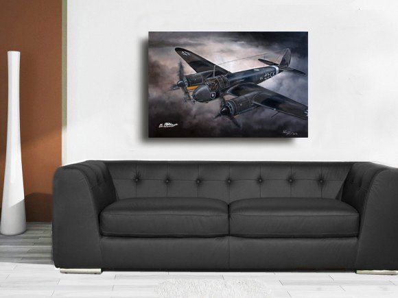 Auch von diesem Ölgemälde " Junkers JU 188 Bomber vor Dover " bieten wir hier einen hochwertigen Leinwand Kunstdruck auf echter Leinwand, komplett fertig auf Holzkeilrahmen aufgezogen und in bester deutscher Herstellungsqualität ab 86,- Euro zum Kauf an.
